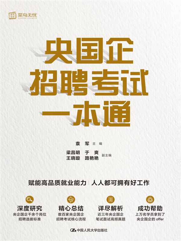 本书为有志于进入央企国企的大学生和社会求职者提供一份系统全面的指南,帮助提升获得offer的成功率。全书主要包含以下内容:网申简历、笔试攻坚、面试通关、入职经验。书中深度研究了央企国企人才招聘选拔标准,精心总结了数百家央企国企招聘考试的核心流程,详尽解析了近三年央企国企笔试面试真题。同时,书中还提供了成功求职者的真实案例,以及央企国企人力资源总监等高管人员的招聘经验,为求职者提供实战参考。